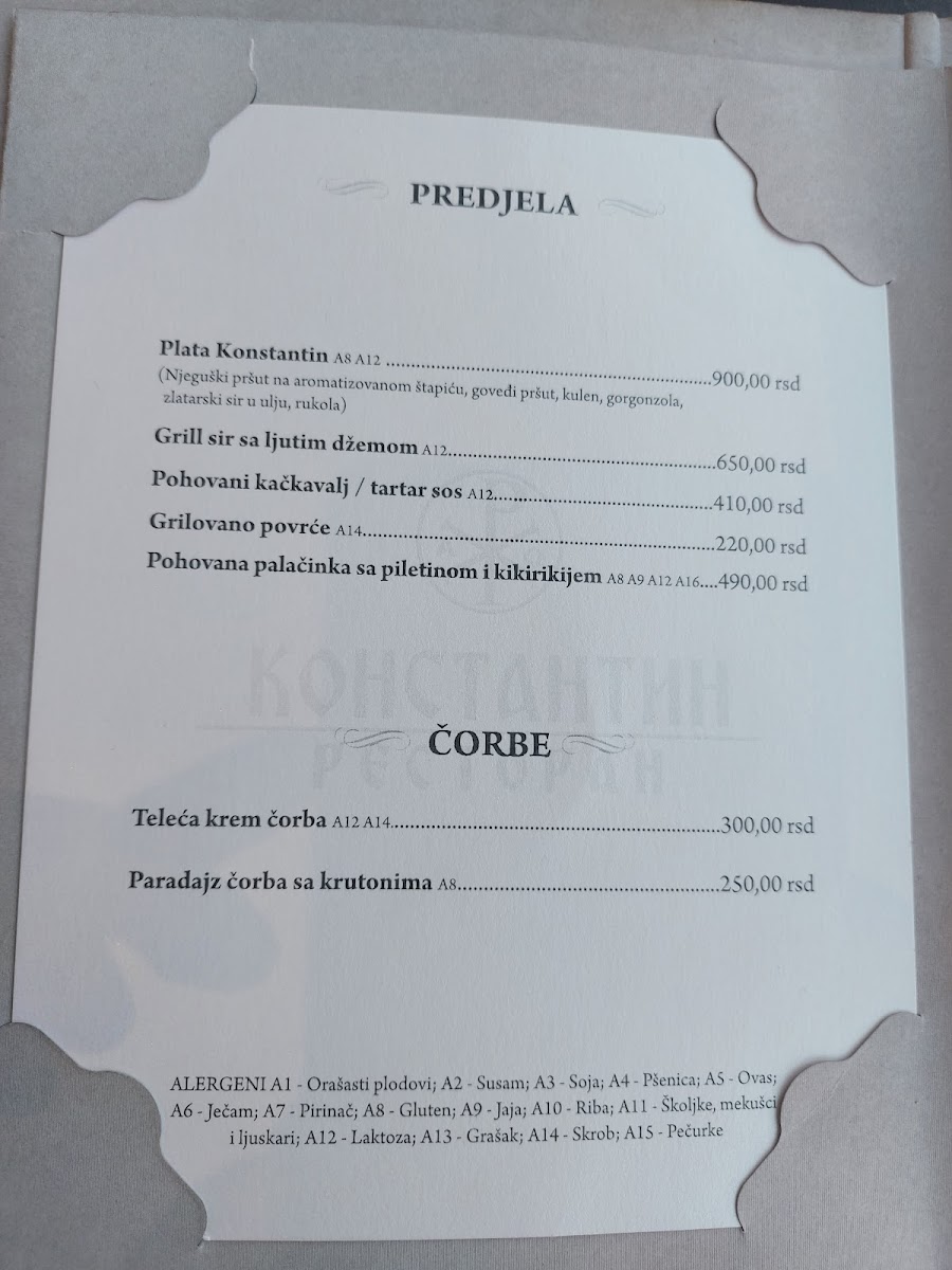 Whether you're stopping for a quick bite or a long meal, Constantine guarantees a satisfying experience that captures the essence of Serbian hospitality.